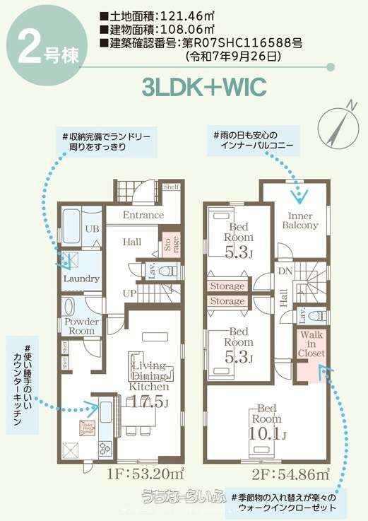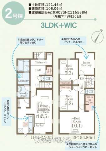 | 建物面積 | 108.06m² / 32.68坪 | 土地面積 | 121.46m² / 36.74坪 |