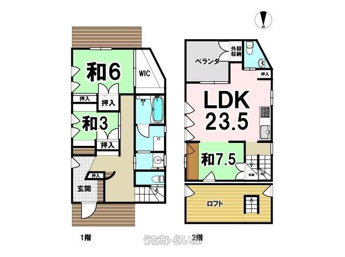 | 間取り | 3LDK ( 洋7.5 和6 和3 LDK23.5 ※3LDK+WIC+ロフト付き!) | ||