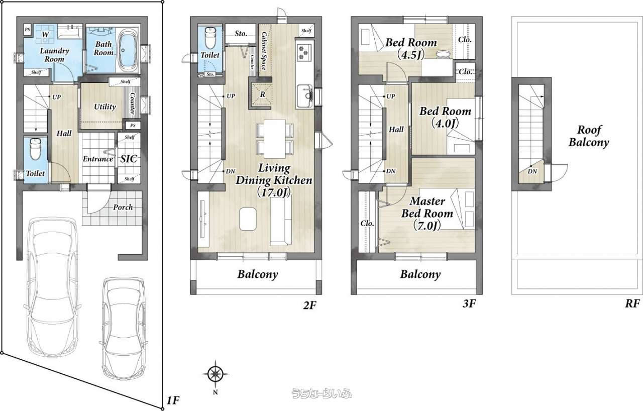 | 間取り | 3LDK ( 洋7 洋4 洋4.5 LDK17 ※ルーフバルコニー付き) | ||
