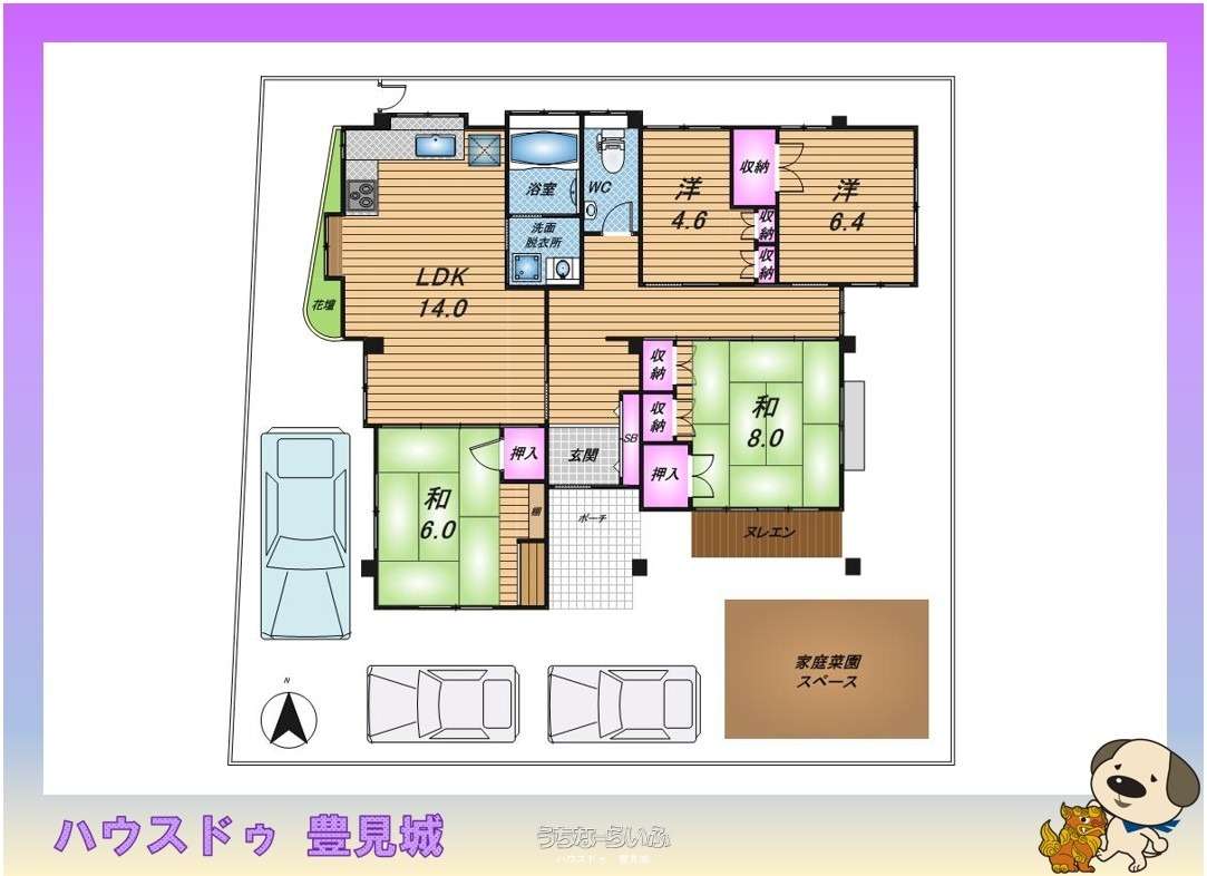 | 間取り | 4LDK ( ※和8.0/6.0 洋6.4/4.6 LDK14.0) | ||