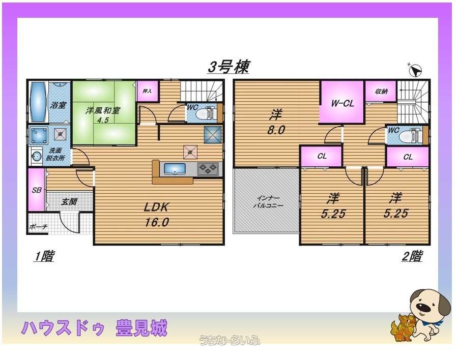 | 間取り | 4LDK ( ※洋8.0/5.25/5.25 洋風和室4.5 LDK16.0 ) | ||
