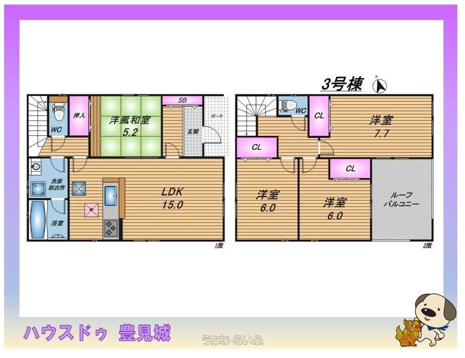 | 間取り | 4LDK ( ※洋風和室5.2 洋室7.7/6.0/6.0 LDK15.0 ) | ||