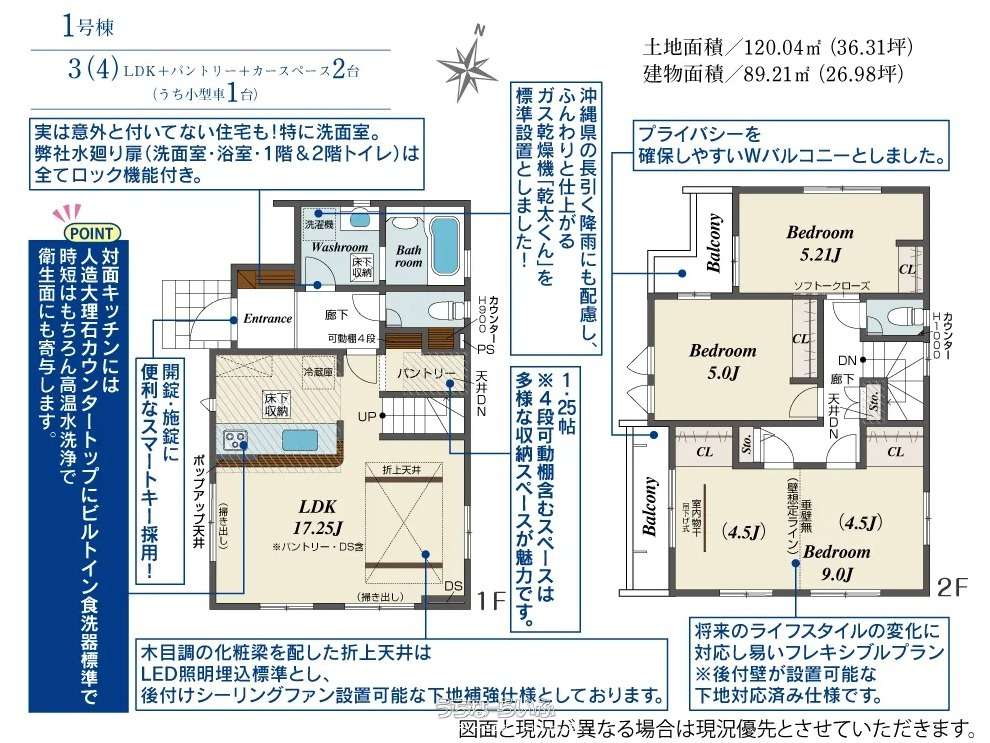 | 建物面積 | 89.21m² / 26.98坪 | 土地面積 | 120.04m² / 36.31坪 |
