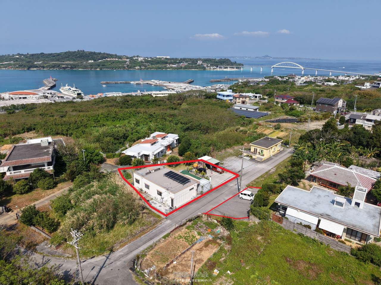 2020年築の4LDK平屋住宅。屋上付きで瀬底島・伊江島を望むロケーション。週末にはヒルトン瀬底島の花火も楽しめます。築浅・景観良好のおすすめ物件です