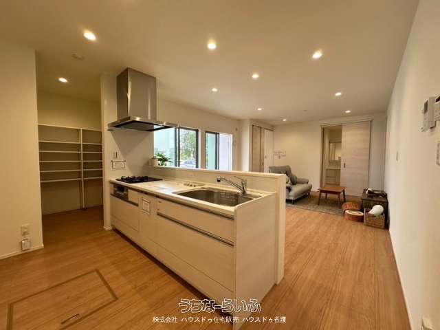 【平屋】4LDK・駐車場3台~光と玄関の木目が温かさを演出~キッチン周りを整理できるパントリーあり♪食料品の買い置きなどもスッキリ収納できます。羽地小学校まで徒歩8分!/11号棟
