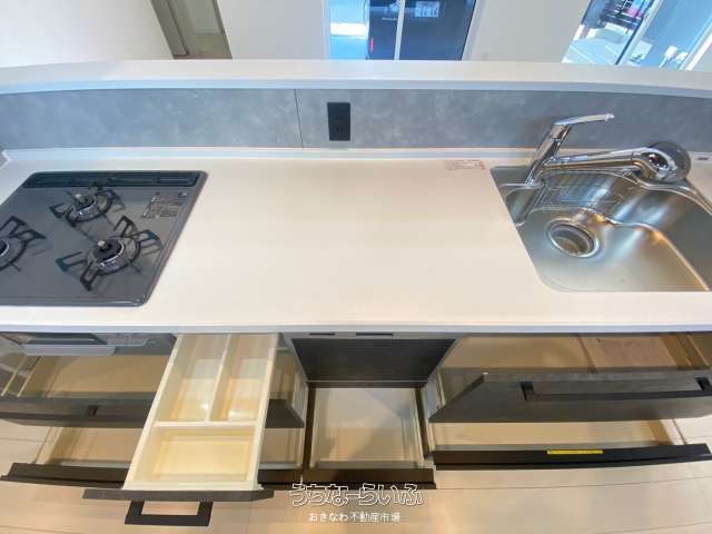 | キッチン | 給湯 、 省エネ給湯器 、 ガスコンロ 、 コンロ三口以上 、 対面式キッチン(カウンターキッチン) 、 システムキッチン 、 パントリー(食器・食品の収納庫) 、 食器洗乾燥機 |