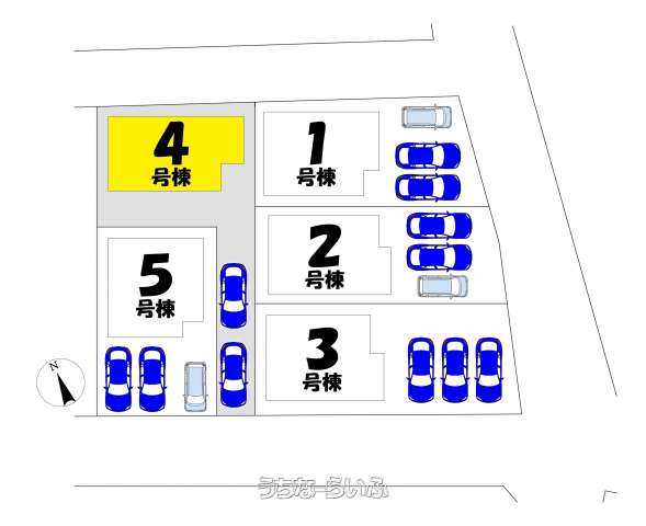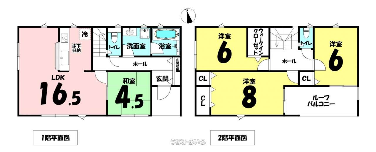 | 間取り | 4LDK ( 洋8 洋6 洋6 和4.5 LDK16.5 ※ウォークインクローゼット、ルーフバルコニー付) | ||