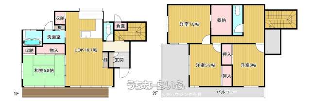 | 間取り | 4LDK ( 洋7.8 洋6 洋5.8 和5.8 LDK16.7) | ||