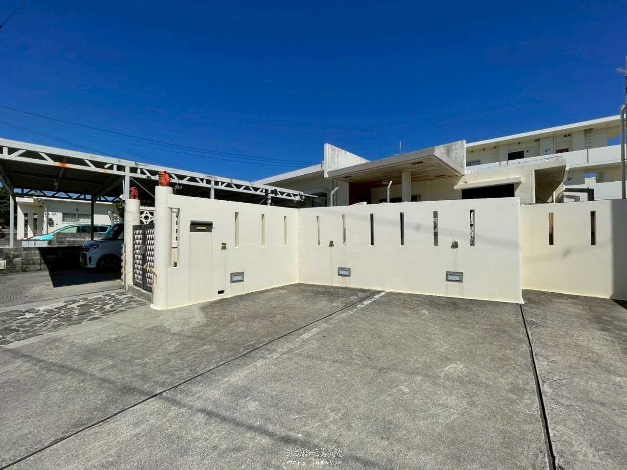 ゆとりの平屋ライフ。駐車場も4台並列で駐車可能!一部カーポート付き!✨うるま市の海中道路まで車で約12分の静かな住まい🍃お問い合わせはハウスドゥ うるまみどり町へ♪