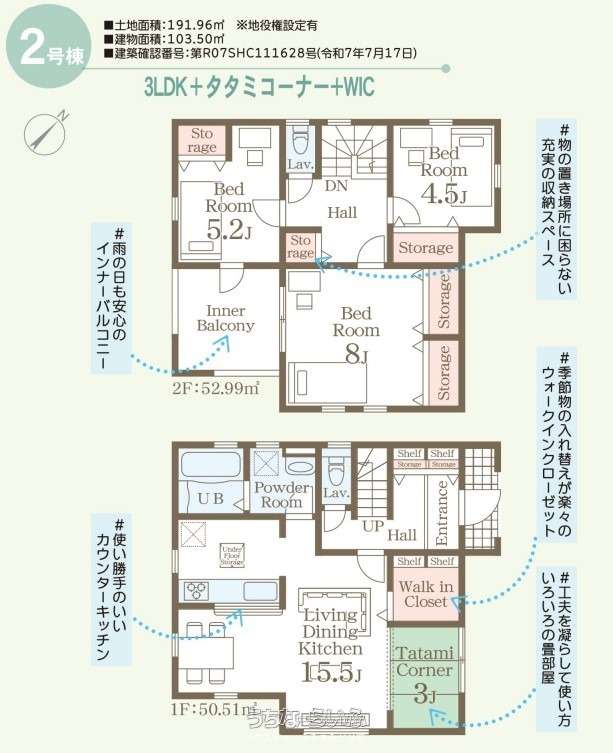 | 建物面積 | 103.5m² / 31.3坪 | 土地面積 | 191.96m² / 58.06坪 |