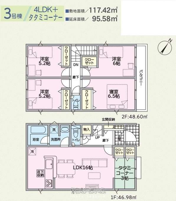 | 間取り | 4LDK ( 洋6.5 洋6 洋5.2 和5.2 LDK16 ※タタミコーナー(3帖)有) | ||
