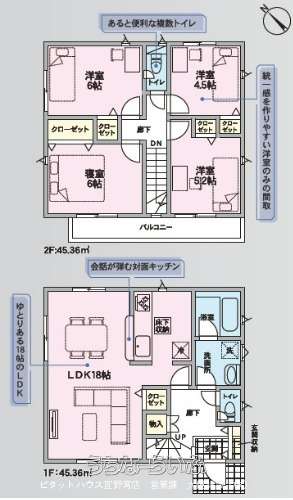 | 間取り | 4LDK ( 洋6 洋6 洋5.2 洋4.5 LDK18) | ||