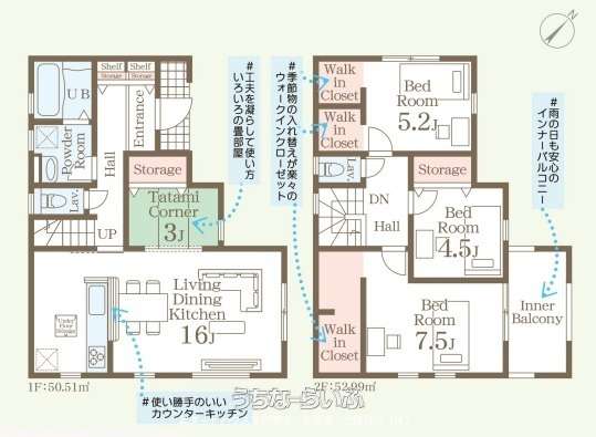 | 間取り | 4LDK ( 洋7.5 洋5.2 洋4.5 和3 LDK16) | ||