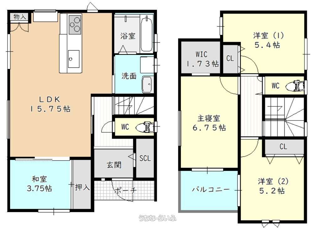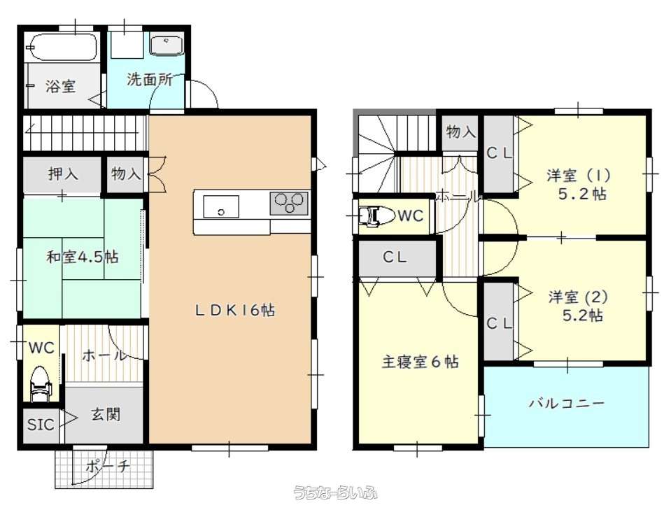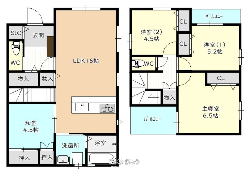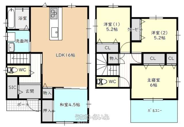 | 間取り | 4LDK ( 洋6.8 洋5.2 洋5.2 和4.5 LDK16 ※モデルルーム5号地の情報となります。) | ||