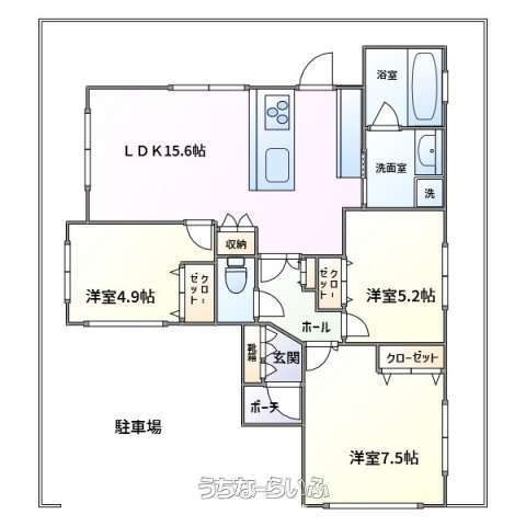 | 間取り | 3LDK ( 洋4.9 洋5.2 洋7.5 LDK15.6) | ||