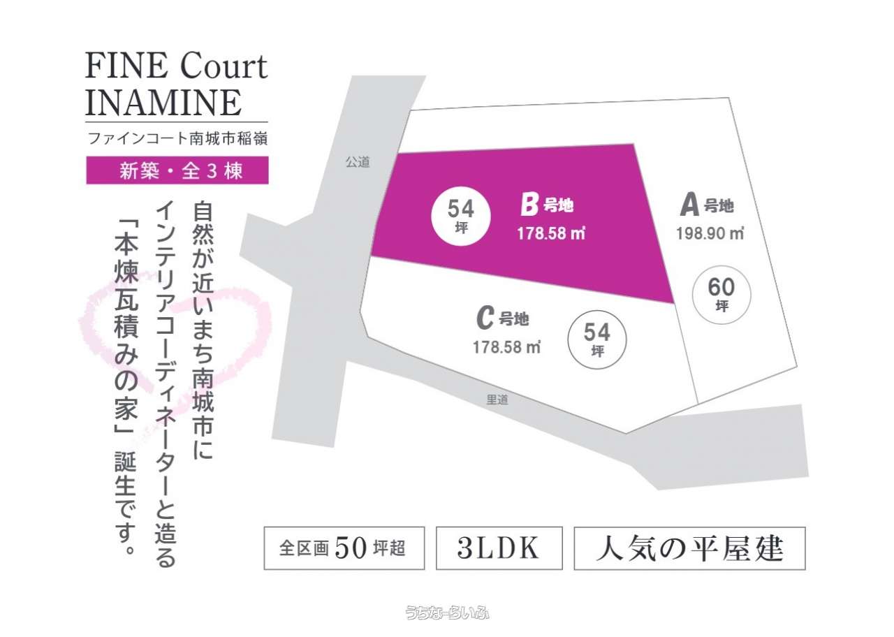 新着♪【新築戸建 ファインコート南城市稲嶺B号地】ゆとりの敷地に人気の平屋 3LDK★インテリアコーディネーターと造った煉瓦積みの家★売主につき仲介手数料不要♪順次ご案内中‼お気軽にお問合せ下さい