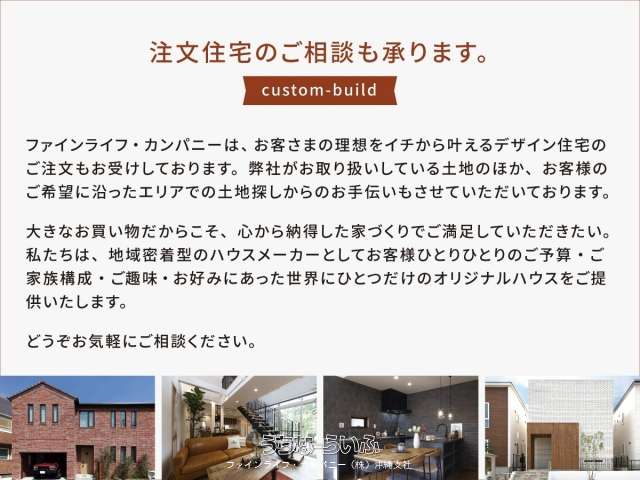 | 設備備考 | 床下換気システム標準搭載、湿度調整壁材エアウォール、物干金物のあるデッキテラス、間接照明・ダクトレール・外部スポットライト等ライティング設備充実、ホテルライクな造作洗面台 |