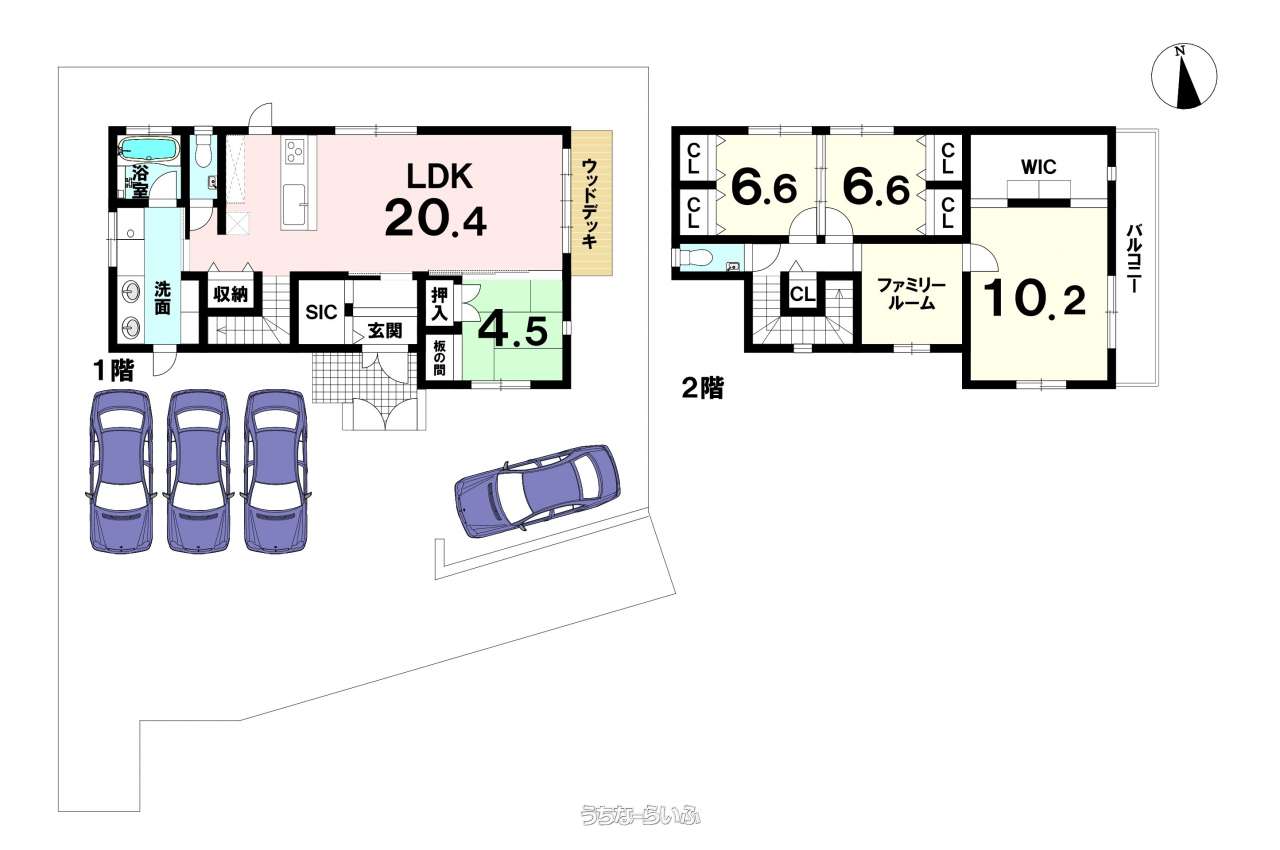| 間取り | 4LDK ( 洋6.6 洋6.6 洋10.2 和4.5 LDK20.4) | ||