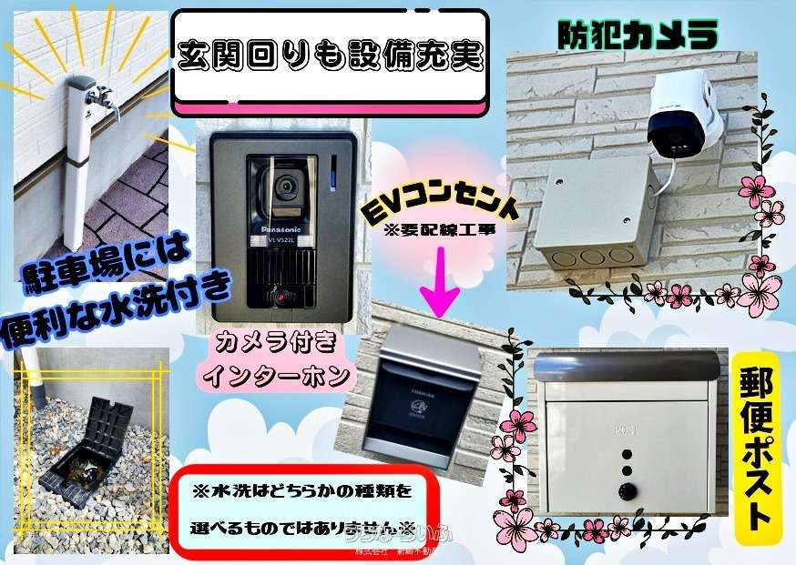 | 建物設備 | 上水道 、 EV車充電設備 、 複層ガラス 、 24時間換気システム 、 プロパンガス |
