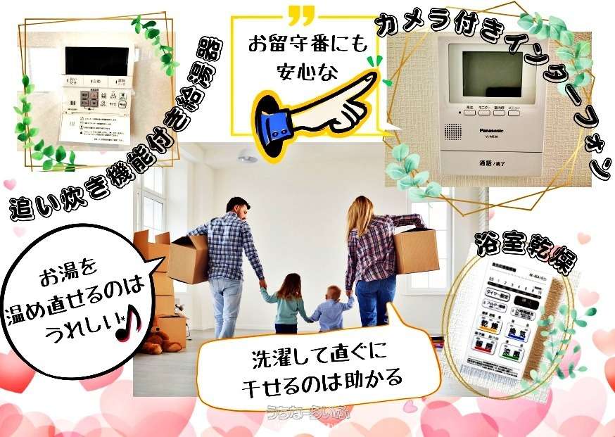 | バス・トイレ | バス/トイレ別 、 ユニットバス 、 浴槽 、 シャンプードレッサー 、 独立洗面所 、 追焚機能 、 浴室乾燥機 、 浴室1坪以上 、 浴室暖房 、 トイレ2ヶ所 、 温水洗浄便座 |
