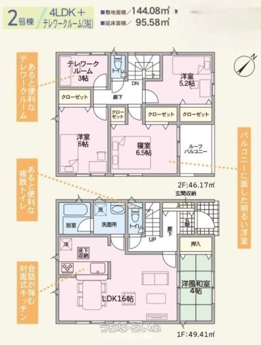 | 間取り | 4LDK ( 洋6.5 洋6 洋5.2 和4 LDK16 ※テレワークルーム3帖) | ||