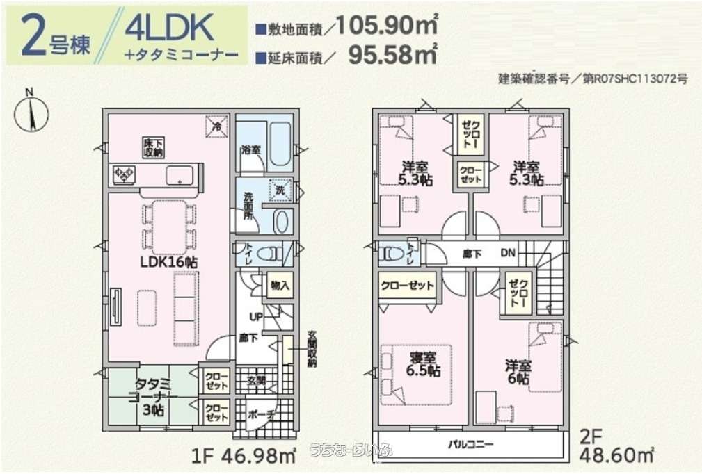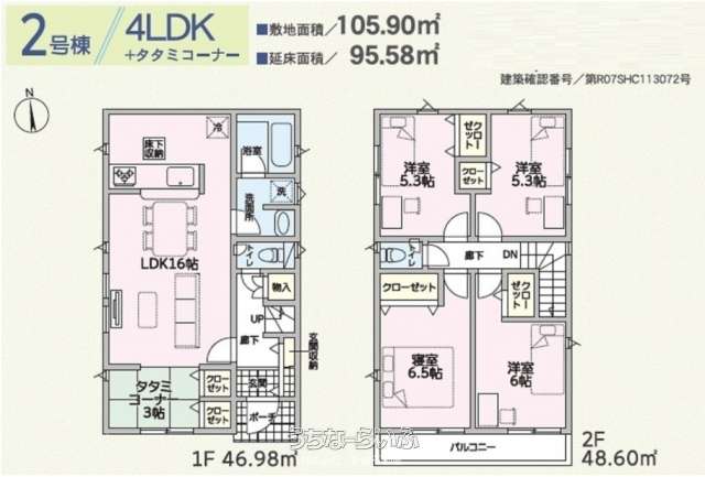 | 間取り | 4LDK ( 洋6.5 洋6 洋5.3 洋5.3 LDK16 ※畳コーナー3畳) | ||
