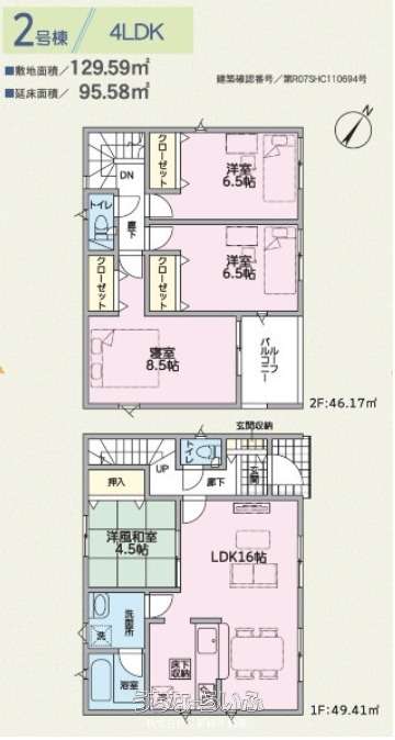 | 間取り | 4LDK ( 洋6.5 洋6.5 洋8.5 和4.5 LDK16) | ||