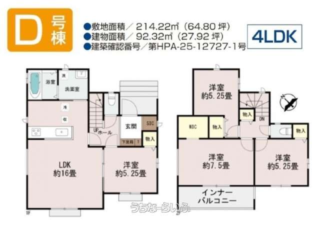 | 建物面積 | 92.32m² / 27.92坪 | 土地面積 | 214.22m² / 64.8坪 |