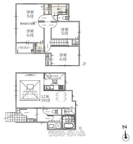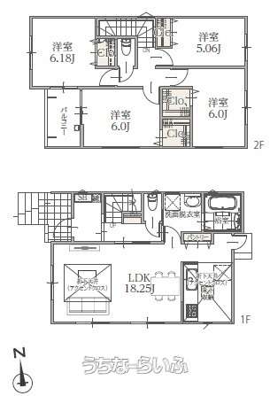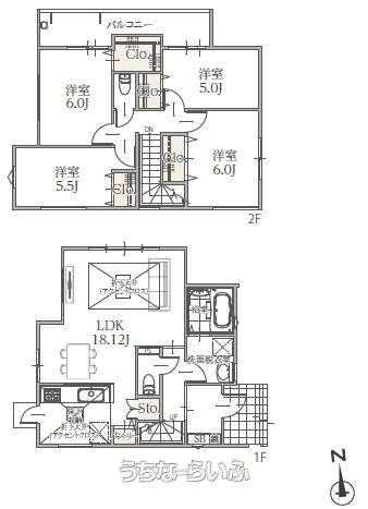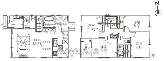 | 間取り | 4LDK ( 洋6 洋6 洋5.2 洋5 LDK18 ※2階ホール収納付き) | ||