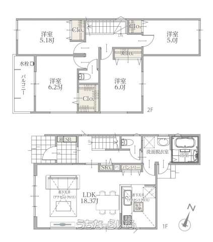 | 間取り | 4LDK ( 洋6.2 洋6 洋5.1 洋5 LDK18.3 ※ウォークインクローゼット、パントリー、ファミリークローク、ワイドバルコニー) | ||