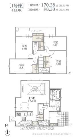 | 建物面積 | 98.33m² / 29.74坪 | 土地面積 | 170.38m² / 51.53坪 |
