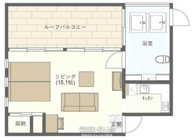 | 間取り | 1K ( 洋14.5 K2 ※バルコニー) | ||