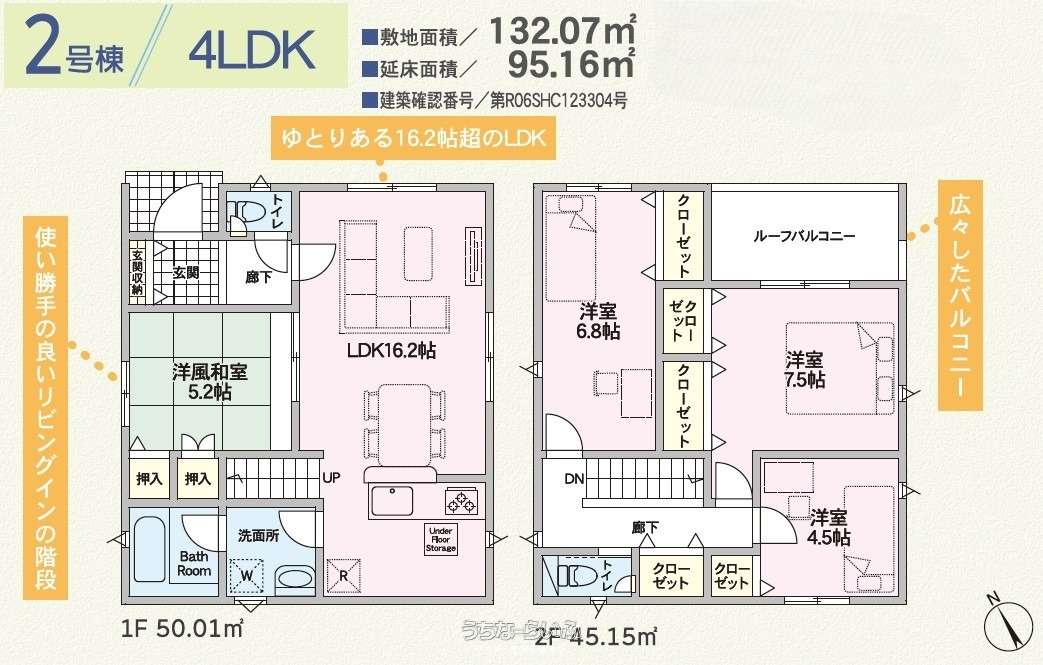 | 間取り | 4LDK ( 洋7.5 洋6.8 洋4.5 和5.2 LDK16.2 ※1階和室希望の方必見です!) | ||