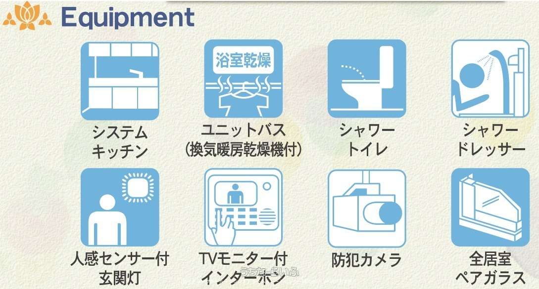 | 設備備考 | 設備表記は図面と現況が相違する場合がございます。図面及びチラシ、WEB上の表記と現地及び仕様書等の表記が異なる場合は現況優先となります。ご契約後、お客様の別途費用により取付け可能な設備工事がございますので、詳しくは弊社営業スタッフまでお問合せください!物件は販売中につき、お申込み及びご契約予定、ご契約済みとなる場合がございますので、予めご承知おきください。 |