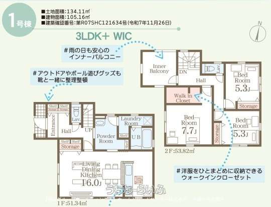 | 収納 | 床下収納 、 全居室収納 |