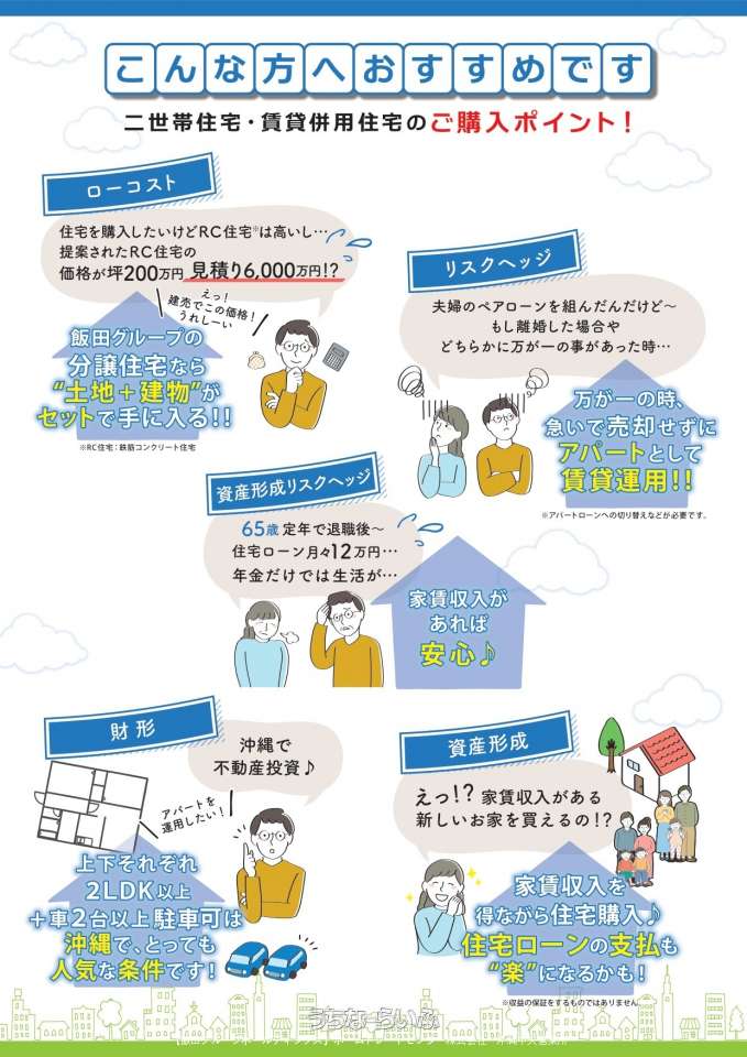 🍎✨飯田グループが提案する新築2世帯住宅・賃貸併用住宅🍎✨全国44店舗展開、沖縄にこなくても契約可📢本日同社モデル棟見学OK📢❤️今帰仁勢理客25-1 2号棟🏠リナージュ【家族間での子育てや介護のサポートがし易く、将来的には賃貸物件としての活用も✨🏠】お飯田グループだから実現できる提携金利が利用可能!お客様のご要望に沿った住宅ローンをホムトレスタッフがアテンド致します!