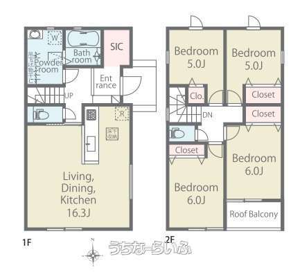 | 間取り | 4LDK ( 洋5 洋5 洋6 洋6 LDK16.3 ※床下収納、ルーフバルコニー) | ||
