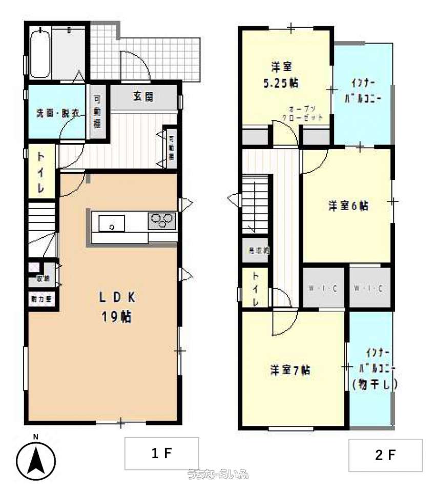 | 間取り | 3LDK ( 洋7 洋6 洋5.2 LDK19 ※床下収納、トイレ2ヶ所) | ||