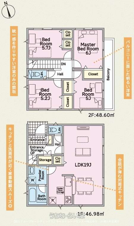 | 間取り | 4LDK ( 洋5 洋5.2 洋5.7 洋6 LDK19 ※床下収納、トイレ2ヶ所) | ||