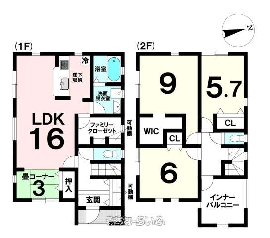 間取り | 3LDK ( 洋9 洋6 洋5.7 LDK16) | ||