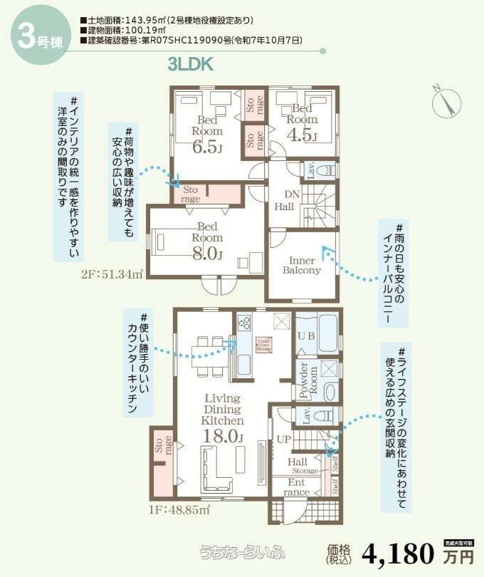 | 価格 | 3,980万円 | 階数 | 2階建て |