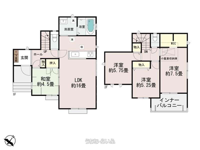 | 間取り | 4LDK ( 洋7.5 洋5.7 洋5.2 和4.5 LDK16 ※広いウォークインクローゼット,インナーバルコニー) | ||