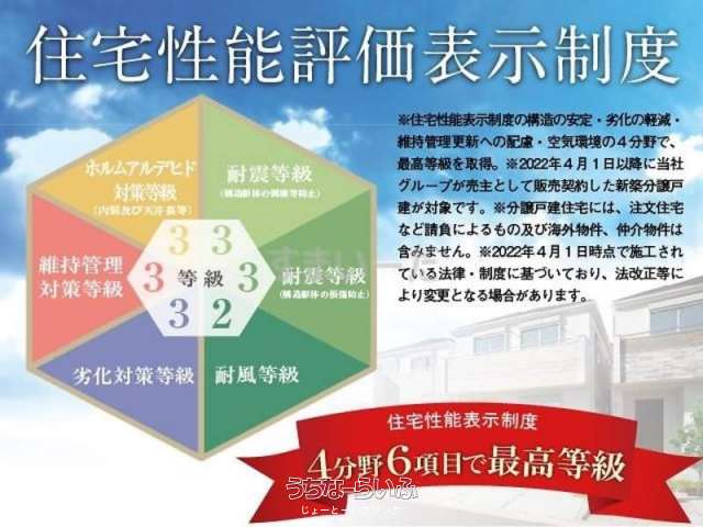 | 評価・証明書 | 設計住宅性能評価書 、 建設住宅性能評価書(新築時) 、 フラット35・S適合証明書あり 、 完了検査済証 、 新築時・増改築時の設計図あり |