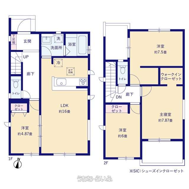 | 間取り | 4LDK ( 洋7.8 洋7.5 洋6 洋4.8 LDK16 ※4LDK+WIC×2) | ||