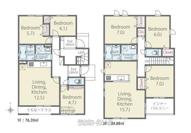 | 間取り | 6LDK ( 洋5.7 洋4.7 洋4.1 洋7 洋7 洋6 LDK28 ※完全分離型 二世帯 1F:3LDK(洋5.7・洋4.7・洋4.1・LDK12.5) 2F:3LDK(洋7・洋7・洋6・LDK15.7)) | ||