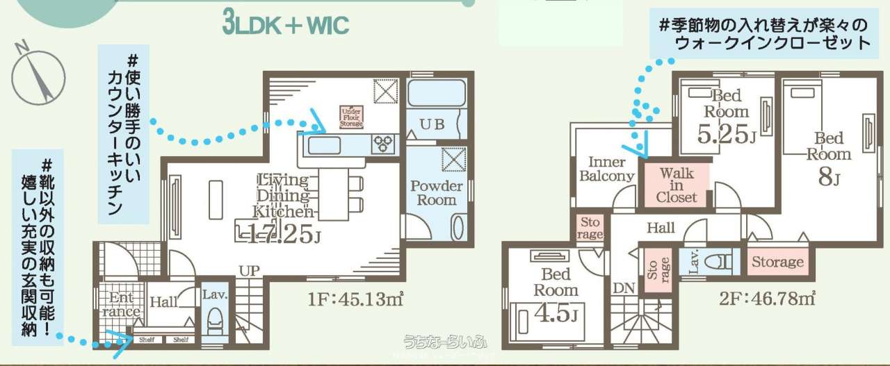 | 間取り | 3LDK ( 洋8 洋5.2 洋4.5 LDK17.2 ※3LDK+WIC 充実の玄関収納♪) | ||