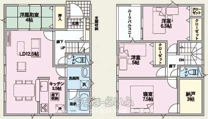 | 間取り | 4LDK ( 洋5 洋6.5 洋7.5 和4 LDK12.5 ※納戸3帖) | ||