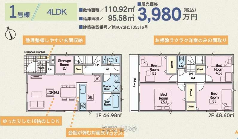 | 間取り | 4LDK ( 洋7.5 洋6 洋5 洋4.5 LDK16 ※リビング横ストレージルーム付き) | ||