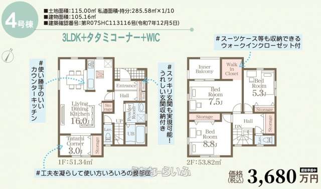 | 価格 | 3,680万円 | 階数 | 2階建て |