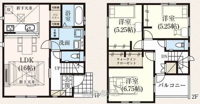| 間取り | 3LDK ( 洋6.7 洋5.2 洋5.2 LDK16 ※ウォークインクローゼット、バルコニー) | ||